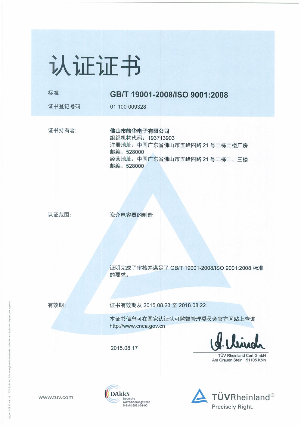 ISO9001证书