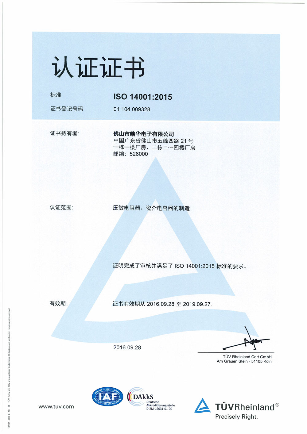 ISO14001证书