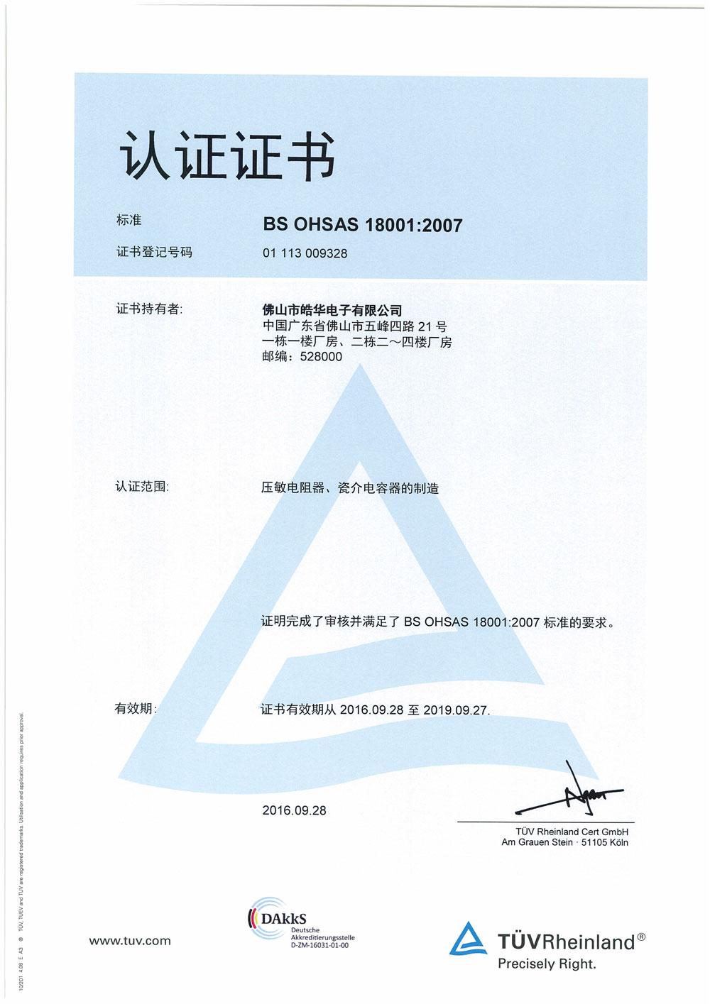 OHSAS18001证书